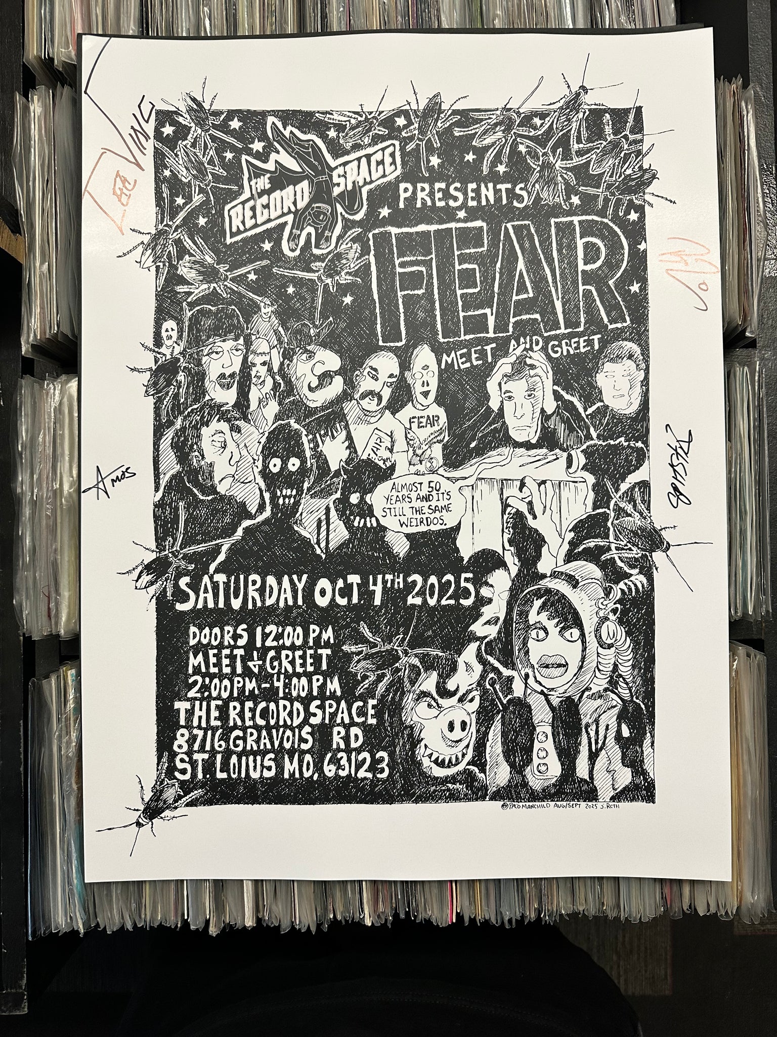 FEAR Meet And Greet The Record Space 18x24 Event Poster SIGNED by Lee, Spits, Eric and Amos featuring art by Paco Manchild.
